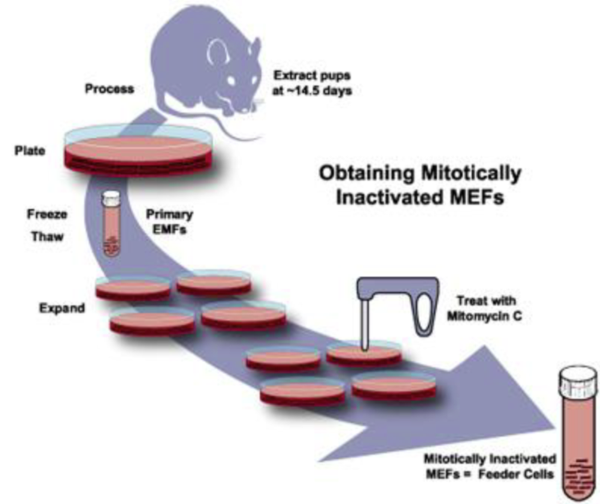 分离小鼠胚胎并进行原代培养,是胚胎干细胞培养的第一个也是最重要的阶段。小鼠胚胎成纤维细胞能提供胚胎干细胞生长的物质及关键性因子,从而用于支持鼠和人胚胎干细胞的生长并维持未分化的状态。